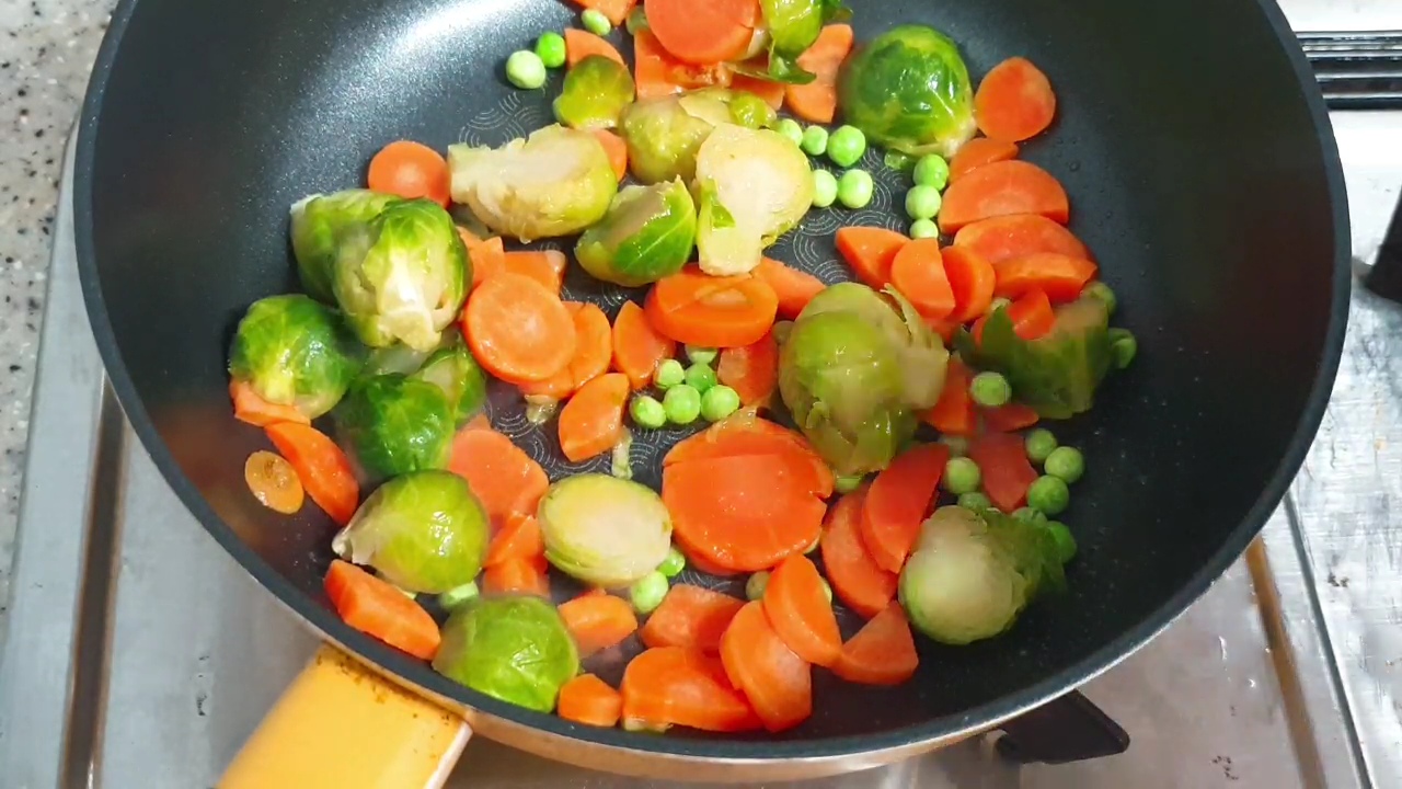 먼저, 냉동실에 있는 냉동야채들을 꺼내준 다음 물에 살짝 헹궈줬어요.