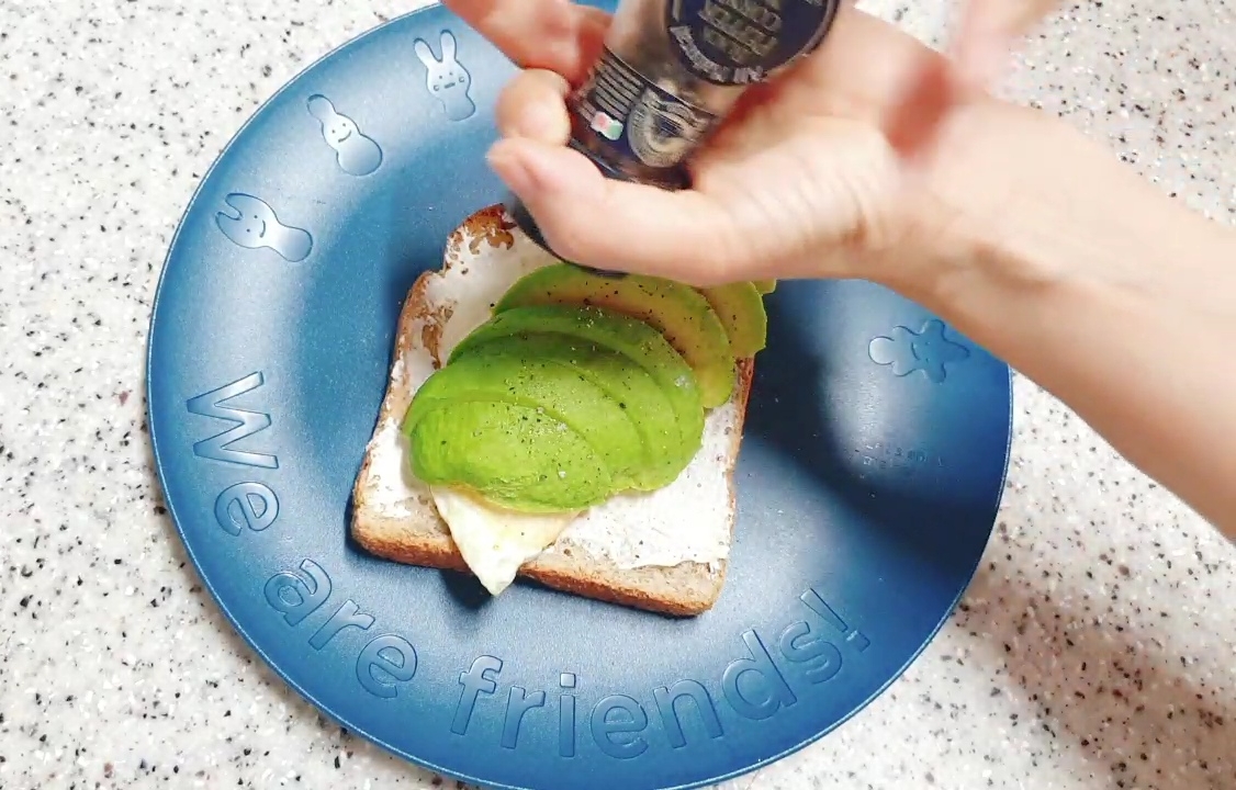 그다음 반숙 계란 프라이와 아보카도를 올려 소금, 후추 간을 해주면 끝!!