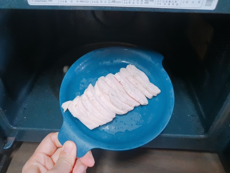 물론, 그냥 바로 먹어도 되는데 저는 차가운 닭가슴살은 싫기 때문에 전자레인지에 꼭 데워서 먹어요.