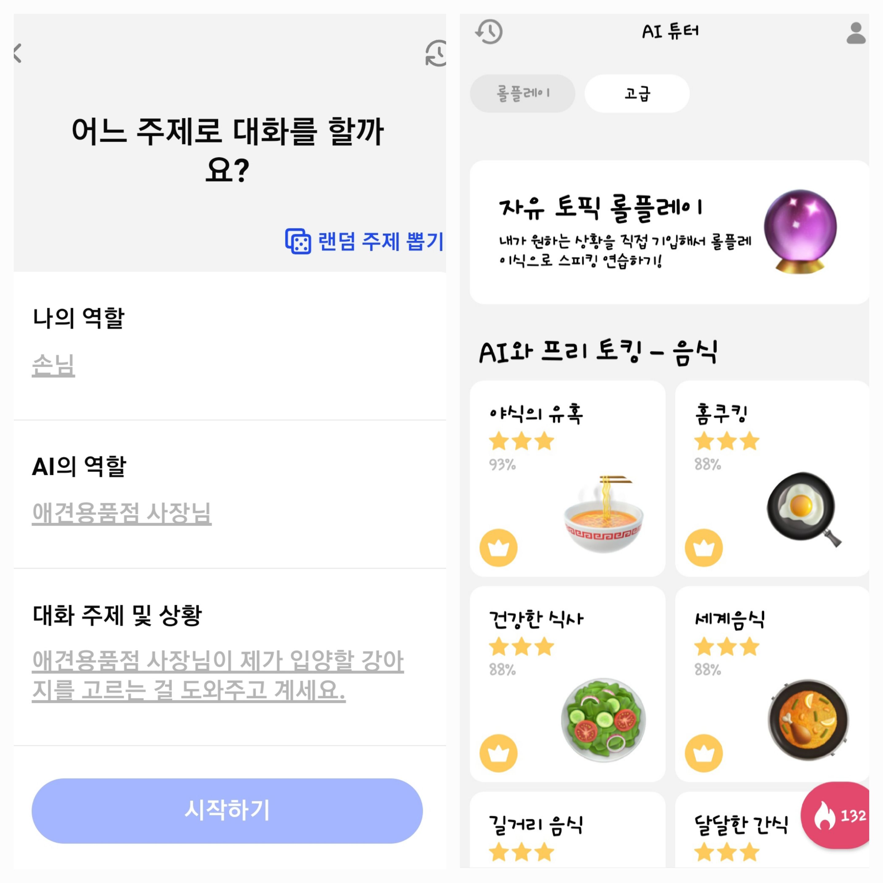 인공지능 AI 와 영어로 프리토킹을 하는 컨텐츠로, 다양한 주제로 대화할 수 있으며, 또 내가 원하는 상황을 설정해서 AI 와 상황연극 즉, 롤플레잉 게임을 할 수 있어요!