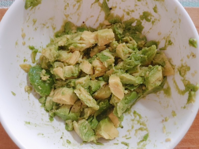 부드럽게 다 으깨줘도 좋은데, 저는 아보카도가 씹히는 식감을 좋아하기 때문에 듬성듬성하게 으깨줬어요~♡
