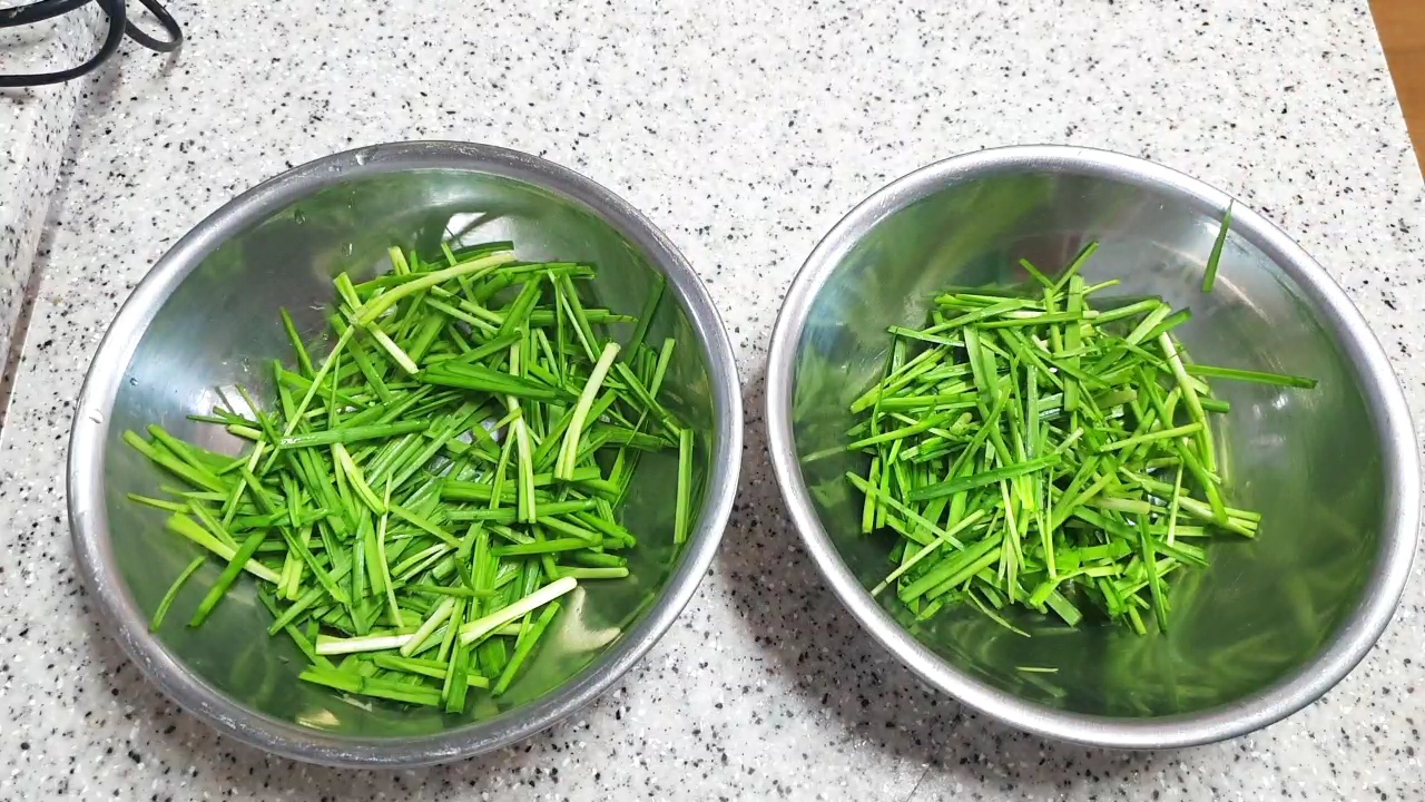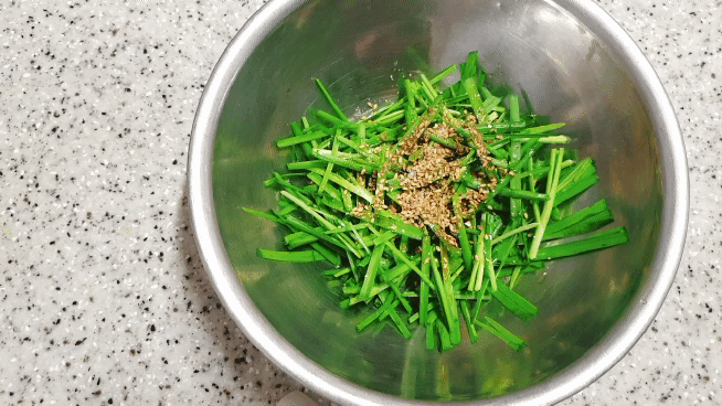 먹기 좋게 자른 부추에 식초, 설탕, 간장, 맛소금, 참기름, 깨소금 넣고 조물조물 무쳐주면 끝!!