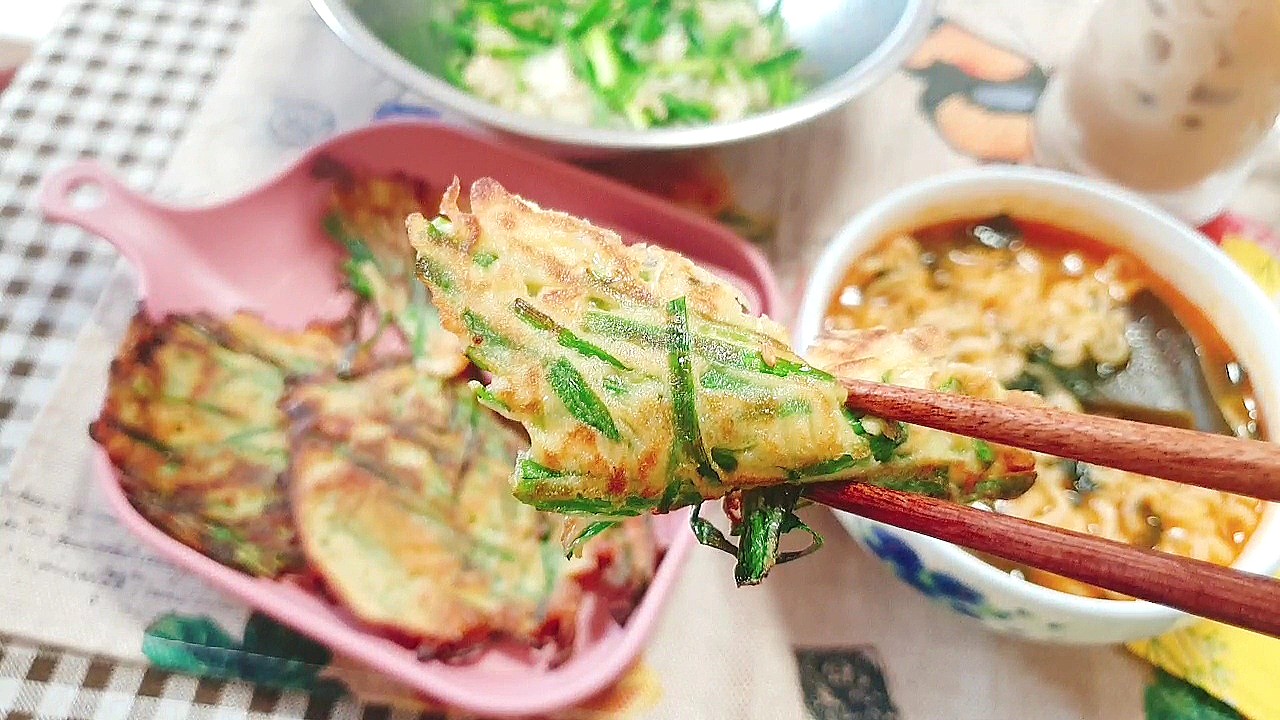 다음은 바삭한 부추전을 만들어 줬어요!