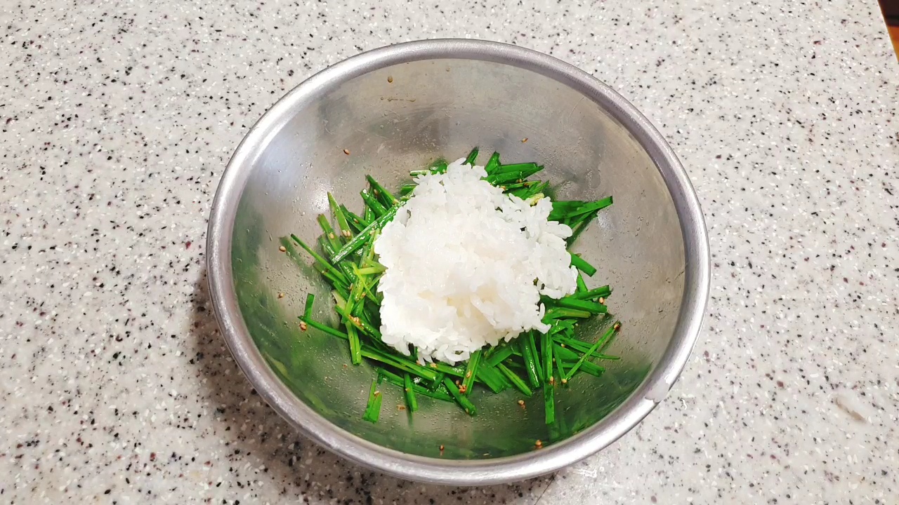 부추비빔밥을 위해서는 먼저 부추부침을 만들어줘야 하는데요, 별다른 거 없어요.