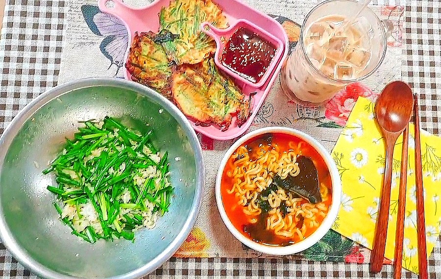 부추 한 단으로 후다닥 한 상이 차려졌네요.