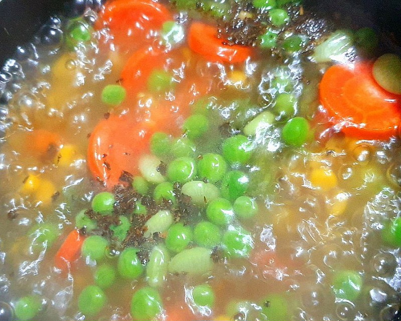 저는 5가지 혼합야채 와 냉동당근을 넣었는데,