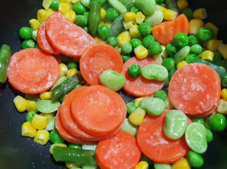 저는 냉동실에 항상 쟁여져 있는 냉동야채를 사용해요.
