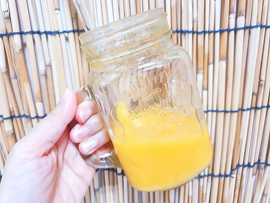 망고의 찐한 맛이 그대로 느껴지는 걸쭉하고 달달한 망고스무디가 완성됐어요.